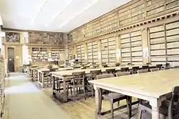 La bibliothèque universitaire avait été aménagée au milieu de l’université, et disposait d’une vaste salle de lecture au premier étage et de quatre salles au deuxième étage servant au stockage des publications académiques[21]. La grande salle était disposée de manière à pouvoir accueillir une soixantaine de lecteurs, avec des rayons situés aux extrémités et contenant principalement des ouvrages de référence[21]. Trois locaux étaient aussi installés au sein de la pièce pour servir de salle de travail pour les professeurs, d’entrepôt pour les atlas et cartes géographiques, et de bureau pour le bibliothécaire[21]. Cependant, malgré l’augmentation de la population étudiante, qui est passée de 500 en 1900 à 2000 en 1930, aucun effort n’était fait pour agrandir la bibliothèque[21]. D’ailleurs, plusieurs ont critiqué son emplacement au centre de l’université, car il étouffait la bibliothèque et empêchait son expansion[21]. Des solutions ont finalement été proposées, notamment par la Faculté des lettres, qui a accepté de donner une partie de ses locaux à la bibliothèque[21]. Plus tard, en 1951, le rectorat a déménagé, et l’ensemble de ses locaux ont été laissés à la bibliothèque[21].