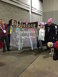 Le groupe américain Progressive Librarians Guild, fondé en 1990 et évoluant en marge de la American Library Association[16], fait partie des acteurs importants de ce mouvement décrit par Toni Samek. Ce groupe considère la bibliothéconomie « comme une profession et une pratique qui permettent de créer et d'accéder à une multitude de formes d'expression, d'expériences et d'aspirations humaines, mais reconnaît également que les bibliothèques sont des lieux où les systèmes d'injustice, d'exploitation, de contrôle et d'oppression sont nourries, normalisées et perpétuées »(traduction libre)[6]. Le but de la Progressive Librarians Guild est de « dénoncer la complicité des bibliothèques envers ces systèmes et de proposer des pratiques alternatives permettant de donner une visibilité à ceux qui sont exclus des positions de pouvoirs et/ou non-représentés dans la société et de développer une praxis qui contribue à la défense des droits humains et de la dignité humaine » (traduction libre)[6].