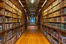 La bibliothèque a ses locaux dans le premier collège et bâtiment de l'université, au premier étage du bâtiment central et autour de la cour intérieure pour être précis.
