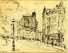La Bibliothèque royale de Belgique et la statue équestre d'Albert Ier par Alfred Courtens. | |||