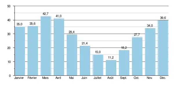 Le module de la rivière à Jeurre est de 30,0 m3/s[5].
