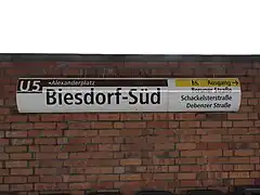Biesdorf-Süd est desservie par les rames circulant sur la ligne 5 du métro.