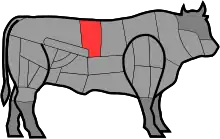 Le bifteck à la florentine est obtenu en coupant le faux-filet (la partie correspondant aux vertèbres lombaires, la moitié du dos du côté de la queue) de veau ou Bos taurus : un os en forme de T est disposé au milieu, un bifteck d'aloyau, avec le filet d'un côté et la surlonge de l'autre.