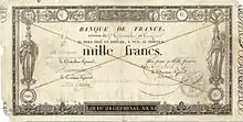 Billet de 1 000 francs de type « noir » et « Germinal » (Banque de France, Paris, 1803).