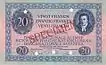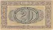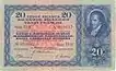20 francs | 88 × 141 mm | Brun et bleu | Fribourgeoise | Ornements et rosace | Billet de réserve |