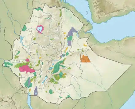 Différents auteurs ont tenté de caractériser la végétation éthiopienne, avec des résultats parfois très différents en fonction des critères retenus et de l'interprétation faite des espaces dans lesquels les activités humaines, en particulier l'agriculture, ont affecté les paysages. La plus ancienne classification est celle de Pichi-Sermolli publiée en 1957[8] et couvrant toute la Corne de l'Afrique, qui distingue 21 types de végétation présents en Éthiopie. Très influente, la carte de la végétation de l'Afrique réalisée par White en 1983 (traduite en français en 1986[9]) utilise 14 unités chorologiques pour l'Éthiopie, dont sept présentes de façon très marginale. Cette classification est utilisée par les auteurs de la division des écosystèmes terrestres en écorégions pour le WWF (voir supra), avec quelques ajustements et remaniements. Ces systèmes s'avèrent cependant insatisfaisants pour décrire de façon exhaustive la diversité de la végétation éthiopienne, et négligent notamment certaines forêts du sud-ouest découvertes après la publication du mémoire de White, tout comme ils rendent mal compte de la complexité végétale de hauts plateaux[10]. Les auteurs de la Flore de l'Éthiopie et de l'Érythrée (FEE) mettent au point une classification volontairement simplifiée de huit types, qui est publiée sous différentes formes en 1996, 2004, puis 2009. Elle est intégrée par l'Institut éthiopien de conservation de la biodiversité dans la classification officielle des écosystèmes du pays, présentée pour la première fois en 2005. En 2010, une nouvelle carte de la végétation potentielle de l'Éthiopie au 1:2 000 000 est publiée sous la forme d'un atlas de 29 planches. Elle propose une division en 12 types (comprenant plusieurs sous-types) et reprend dans les grandes lignes les unités utilisées par la FEE, avec quelques révisions au niveau de la végétation alpine et des forêts du sud-ouest, et une caractérisation plus fine des milieux aquatiques et humides[11].