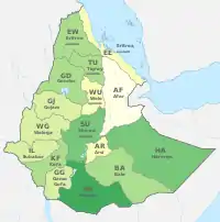 Depuis les travaux d'Alfred Russel Wallace en 1876, le continent africain est divisé en deux domaines biogéographiques majeurs : l'Afrotropique (appelé « domaine éthiopien » par Wallace) et le Paléarctique, qui comprend aussi la majeure partie de l'Eurasie. Les deux domaines, ou « écozones », sont séparés par l'immense désert du Sahara, qui constitue une barrière naturelle majeure à la migration des espèces[5]. L'Éthiopie est entièrement située dans la zone afrotropicale, bien qu'une petite partie de sa faune et de sa flore soit d'origine paléarctique. Au XXIe siècle, le Fonds mondial pour la nature (WWF) a proposé une division des terres émergées du globe terrestre en « écorégions », définies comme des unités contenant un assemblage distinct d'espèces et dont les limites se rapprochent de l'étendue originelle des communautés naturelles avant l'anthropisation[6]. Pour l'Afrique, cette catégorisation se base principalement sur les travaux de classement de la végétation de Frank White (voir infra). Le territoire national éthiopien s'étend principalement sur six de ces régions écologiques et englobe des portions marginales de cinq autres. Les onze écorégions représentent cinq des quatorze biomes de la planète et montrent un niveau de distinction biologique (richesse en espèces animales et végétales, taux d'endémisme) remarquablement élevé (voir infra). Près de 90 % du territoire éthiopien appartient à la biorégion de la Corne de l'Afrique, un assemblage géographique qui présente de fortes affinités au niveau de la faune et la flore. L'Éthiopie est enfin au centre de deux points chauds de biodiversité, sélectionnés à la fois pour leur richesse biologique et pour le fait d'avoir déjà perdu une part importante de leurs habitats : la Corne de l'Afrique et les Montagnes d'Afrique orientale et d'Arabie[7].