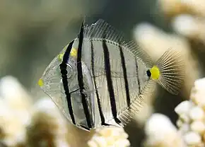De très nombreuses espèces de poissons trouvent refuge dans les récifs coralliens, qui leur donnent de multiples abris et une nourriture abondante et diversifiée. Certaines espèces ne s'y trouvent cependant que pendant leur stade juvénile, avant de rejoindre des eaux plus profondes à la maturité. D’autres encore font des incursions sporadiques dans les lagons, généralement autour des passes, puis rejoignent les pentes. D'un point de vue scientifique, la classe des Pisces (mot latin signifiant « poissons »), fonctionnelle dans la systématique héritée de Carl von Linné, a été abandonnée par les classifications modernes du vivant : cette classe a été divisée en trois classes de vertébrés marins (Agnathes, Chondrichthyens et Ostéichthyens), et il faut noter que pour la classification phylogénétique le terme de poisson ne peut plus avoir aucun sens[29]. Les populations de poissons ne sont pas également réparties : on estime que 50 % des poissons occupent 17 % des océans[30]. La Réunion, avec au moins 1 090 espèces, est d’une richesse enviable de ce point de vue.