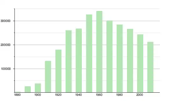 Comme dans d'autres villes industrielles américaines, la population dans la ville elle-même a diminué durant les dernières décennies. Elle était de 340 887 en 1960 et de 212 237 en 2000, soit une perte d'environ 40 %. Toutefois, la croissance de ses banlieues durant la même période a permis à la population de l'aire urbaine d'augmenter.