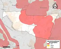 Le retrait-gonflement des sols argileux est susceptible d'engendrer des dommages importants aux bâtiments en cas d’alternance de périodes de sécheresse et de pluie. 59,4 % de la superficie communale est en aléa moyen ou fort (54,2 % au niveau départemental et 48,5 % au niveau national). Sur les 131 bâtiments dénombrés sur la commune en 2019, 105 sont en aléa moyen ou fort, soit 80 %, à comparer aux 57 % au niveau départemental et 54 % au niveau national. Une cartographie de l'exposition du territoire national au retrait gonflement des sols argileux est disponible sur le site du BRGM[12],[Carte 2].