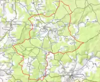 L'occupation des sols de la commune, telle qu'elle ressort de la base de données européenne d’occupation biophysique des sols Corine Land Cover (CLC), est marquée par l'importance des forêts et milieux semi-naturels (60,9 % en 2018), une proportion sensiblement équivalente à celle de 1990 (60,3 %). La répartition détaillée en 2018 est la suivante : forêts (60,9 %), prairies (24,3 %), zones agricoles hétérogènes (10,5 %), terres arables (4,3 %)[34]. L'évolution de l’occupation des sols de la commune et de ses infrastructures peut être observée sur les différentes représentations cartographiques du territoire : la carte de Cassini (XVIIIe siècle), la carte d'état-major (1820-1866) et les cartes ou photos aériennes de l'IGN pour la période actuelle (1950 à aujourd'hui)[Carte 3].