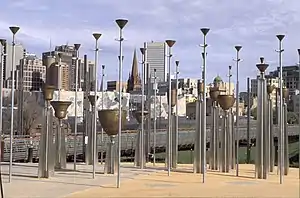 Sur la terrasse médiane, Federation Bells (« les cloches de la Fédération »), mises en service en 2001, est un groupe de cloches de temple inversées, de différentes tailles, montées sur des mâts en acier. Le résultat ressemble un peu à un ensemble de cloches d'église, à ceci près qu'elles sont disposées dans un espace ouvert au lieu d'être confinées dans un clocher, permettant aux gens de circuler entre elles. Il y en a 39 au total, pour un poids global de 1.2 tonne. Accordées dans la gamme naturelle, elles sont contrôlées par ordinateur, et jouent sept morceaux différents, chacun durant cinq minutes. Cette sculpture sonore joue trois fois par jour. Les cloches furent conçues par Neil McLachlan, et leur disposition et la structure qui les soutient ont été créées par Ronald Jones et les architectes de Swaney-Draper.