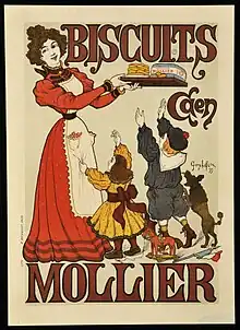 A partir du Second Empire et avec l'arrivée du chemin de fer, la Normandie voit arriver les villégiaturistes qui s'adonnent aux bains de mer sur le littoral et se retrouvent à l'heure du thé autour de boissons chaudes, agrémentées de biscuits locaux dont le plus populaire est le sablé normand. Cette pâtisserie, qui a l'avantage de se conserver plusieurs semaines, apparaît dans les devantures des boulangeries et des épiceries ou autres petits commerces de bouche qui explosent à la fin du XIXe siècle. Sa fabrication est artisanale et se fait en ateliers avec quelques ouvriers. L'une des biscuiteries les plus anciennes du Calvados est la Biscuiterie normande, créée en 1850 à Caen par Pierre Mollier, qui se spécialise dans la fabrication haut de gamme avec des matières premières provenant de Normandie. Outre des sablés, elle fabrique des petits fours, des biscuits secs dits « biscuits de Reims » et des biscuits à la cuiller appelés « biscuits Duchesse ». Sa renommée est grande, la qualité de ses produits étant reconnue aux concours agricoles et culinaires de Cherbourg (1886), Saint-Lô (1882), Caen (1883), Le Havre (1887) et même de Paris (médaille de bronze dès 1880). En 1899, Pierre Mollier s'adresse à un artiste pour assurer la promotion de sa production : Georges Lefèvre, qui deviendra peintre de renom dans l'art de l'affiche sous le nom de Geo Lefèvre (1876-1953). La biscuiterie reçoit la médaille d’argent durant l’Exposition universelle de Paris en 1900. En ce début du XXe siècle, la biscuiterie, qui a étendu sa clientèle à toute la France, industrialise ses procédés de fabrication. Mais cet essor se trouve interrompu par la Première Guerre mondiale avec la pénurie de main-d'œuvre masculine et les mesures de restrictions alimentaires. Pour ravitailler les armées au front, la biscuiterie change de gamme et se voit contrainte d'importer de la farine de riz et de manioc. Elle survit avec deux ouvriers suisses et une dizaine d'employées femmes. A la fin de la guerre, en 1918, Pierre Mollier vend ses secrets de fabrication à un ancien banquier, Albert Boissel, qui décide de se reconvertir dans la biscuiterie dont il pressent l'importance économique. L'entreprise, implantée à Ifs, garde un caractère familial mais devient rapidement florissante au point qu'en 1925 Albert Boissel engage un associé pour le seconder, un jeune cherbourgeois dénommé Lucien Jeannette. Deux ans plus tard, Lucien Jeannette rachète les parts de ses associés et rebaptise la biscuiterie du nom de Biscuiterie moderne du Calvados[4], qui deviendra par la suite Biscuiterie Jeannette[5].