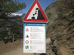L'entrée de la paroi rocheuse est marquée par des marches en bois très raides et très glissantes, surtout par temps humide. La falaise est composée de roches effritables, de ce fait les chutes de pierres sont très fréquentes. Les promenades y sont à éviter par temps pluvieux, neigeux et venteux.