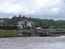 Le Cher a été canalisé au XIXe siècle. L'écluse de Bléré est située à proximité d'un barrage à aiguilles. À proximité de l'écluse, on notera le double logement de l'éclusier et du barragiste (destiné à les accueillir avec leurs familles). Les façades indiquent le niveau des eaux lors des précédentes inondations (notamment celle de 1856, la plus importante à ce jour).