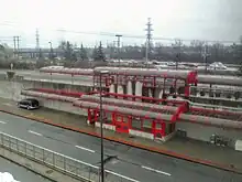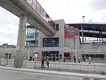 Du côté nord des voies du Transitway, un édicule sur trois niveaux permet de relier, grâce à un ascenseur et des escaliers mécaniques, les quais de la gare routière, le centre commercial et la passerelle au-dessus de la station[12].