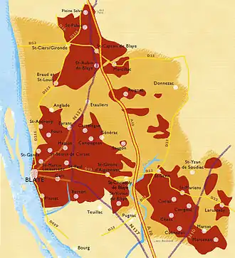 Saint-Ciers-sur-Gironde, Saint-Seurin-de-Cursac, Pleine-Selve, Marcillac, Braud-et-Saint-Louis, Saint-Aubin-de-Blaye, Saint-Caprais-de-Blaye et Saint-Palais.