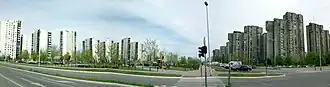 Il est célèbre pour ses rangées de bâtiments résidentiels en béton gris. On y trouve en particulier les blocs 45 et 70 qui regroupent 45 gratte-ciel identiques le long de la Save et 80 immeubles identiques près de la rue Jurija Gagarina.