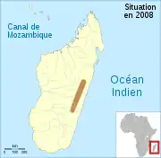 Aire de répartition de Blommersia blommersae.