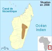 Cette espèce est endémique de Madagascar. Elle se rencontre entre 900 et 2 000 m d'altitude dans les montagnes de l'Est, depuis la réserve spéciale d'Ambohitantely jusqu'au massif d'Andringitra[1],[2].