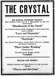 Publicité parue dans un journal mentionnant le film Bloodhounds of the North
