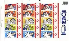 Le , La Poste belge émet une série de cinq Duostamp (timbres) consacrée au personnage de Léonard créé par Turk et De Groot[53]. Le est inaugurée la fresque murale Léonard dans la rue des Capucins à Bruxelles[16]. Elle couvre une superficie de 15 m2. La réalisation de la fresque est confiée à Urbana et est intégrée au parcours BD de Bruxelles[16].