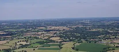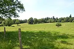 - Le bocage bressuirais, le bocage vendéen et les Mauges couvrent une partie importante du Nord-Ouest des Deux-Sèvres, du Nord de la Vendée et du Sud du Maine-et-Loire. Ils ont constitué le bastion des guerres de Vendée. Avec la Gâtine de Parthenay ce sont des pays de chemins creux, boisés, assez vallonnés et maillés de haies (les palisses en poitevin)[9]. Des actions sont engagées pour préserver, voire replanter les haies bocagères, réapprendre le plessage mais le maillage devient toujours plus lâche[10].