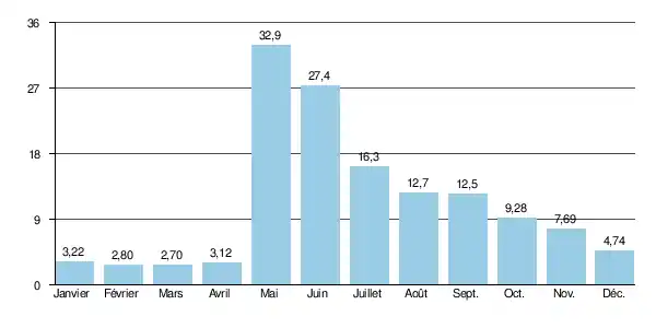 Hydrométrie - Les débits mensuels à Kiakhtinskaïa