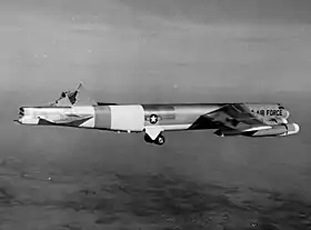 À la fin des années 1950, en raison des missiles sol-air (surface-to-air missiles, SAM) qui peuvent menacer des avions volant à haute altitude[162],[163], vue dans la pratique avec l'incident de l'U-2 en 1960[164], le rôle du B-52 est changé afin qu'il serve de bombardier de pénétration à basse altitude lors d'une attaque prévue sur l'Union soviétique ; en effet, la dissimulation par le terrain est une méthode efficace pour éviter les radars et ainsi la menace des SAM[165]. Bien que n'étant pas conçu pour le vol à basse altitude, l'adaptabilité du B-52 lui permet de durer plus longtemps que ses nombreux successeurs prévus puisque le caractère de la guerre aérienne a changé. L'imposant B-52 peut recevoir de nombreuses améliorations, de nouveaux équipements et d'autres adaptation tout au cours de sa carrière[96].