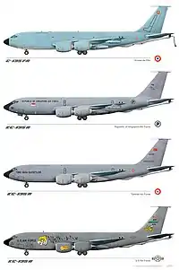 Un certain nombre de pays ont acheté des 707 civils et les ont convertis en ravitailleurs, obtenant un appareil proche du KC-135E : c'est le cas du Brésil, de l'Afrique du Sud, d'Israël et du Venezuela. Ces avions ont un fuselage « civil » et ne sont donc pas des KC-135. Les États-Unis eux-mêmes ont utilisé des cellules de 707 (avec le fuselage plus grand) pour des applications où le C-135 manquait un peu de place.