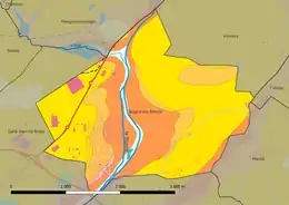Le territoire communal est relativement plat, avec un dénivelé maximal de 25 mètres. L'altitude du territoire varie en effet de 98 mètres, extrémité sud de la vallée de la Bionne, à 123 mètres, près du lieu-dit Charbonnière à l'ouest de la commune[11],[12]. Le talweg du Grand Bouland, au nord de la commune, recueille les eaux de pluie du secteur[13].