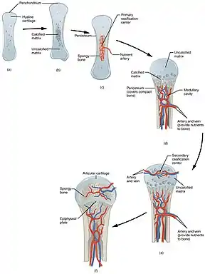Durant la première année d’élongation, la croissance passe par trois étapes d’ossification : endoconjonctive, transitionnelle et enchondrale[16].