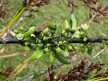 Boutons floraux, fleurs et jeunes fruits de bois de piment.