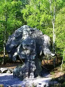 La pierre au Coq, bloc de grès, curieuse formation naturelle dans le bois du Roi.