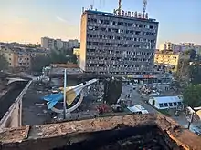 Une frappe du 14 juillet touche un immeuble[3] square Peremohy du centre-ville. Selon les Russes une dizaine d'officiers supérieurs de l'armée de l'air Ukrainienne sont morts ce jour la dont :