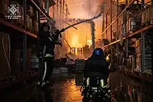 Conséquence d'une frappe de missile tombée contre un centre commercial à Dnipro le 29 décembre 2023. | |