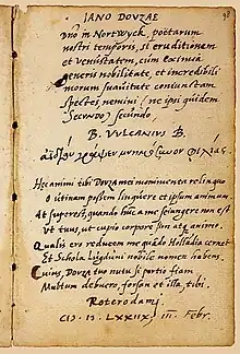 Pierre Cunaeus prononça son oraison funèbre. Il parait que Vulcanius était indifférent en matière de religion. « Il veut être des nôtres[1], dit Scaliger, mais il ne sait ce que c’est de religion ; il est de celle des dés et des cartes. » On le soupçonnait également de ne s’être pas montré scrupuleux sur les moyens de former la belle bibliothèque qu’il possédait, et de s’être approprié beaucoup de livres. Il légua tous ses manuscrits à la BU de Leyde.
