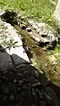 La fontaine est entourée par un admirable accès en calade. Les bassins se déversent les uns dans les autres et des têtes de lions usées servent de dégueuloirs.
