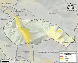 Le retrait-gonflement des sols argileux est susceptible d'engendrer des dommages importants aux bâtiments en cas d’alternance de périodes de sécheresse et de pluie. 12,4 % de la superficie communale est en aléa moyen ou fort (44,5 % au niveau départemental et 48,5 % au niveau national). Sur les 156 bâtiments dénombrés sur la commune en 2019, 127 sont en aléa moyen ou fort, soit 81 %, à comparer aux 75 % au niveau départemental et 54 % au niveau national. Une cartographie de l'exposition du territoire national au retrait gonflement des sols argileux est disponible sur le site du BRGM[42],[Carte 3].