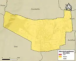 Le retrait-gonflement des sols argileux est susceptible d'engendrer des dommages importants aux bâtiments en cas d’alternance de périodes de sécheresse et de pluie. La totalité de la commune est en aléa moyen ou fort (44,5 % au niveau départemental et 48,5 % au niveau national). Sur les 2 027 bâtiments dénombrés sur la commune en 2019, 2 027 sont en aléa moyen ou fort, soit 100 %, à comparer aux 75 % au niveau départemental et 54 % au niveau national. Une cartographie de l'exposition du territoire national au retrait gonflement des sols argileux est disponible sur le site du BRGM[26],[Carte 3].