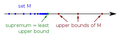 - c'est le plus petit : pour tout y de E, si y est un majorant de F (c'est-à-dire si pour tout x de F, x ≤ y), alors M ≤ y.