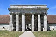 Elles prennent la forme de colonnes doriques[4],[5],[2], rappelant celles du péristyle du bâtiment des gardes à la saline d'Arc-et-Senans[10].