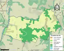 L'occupation des sols de la commune, telle qu'elle ressort de la base de données européenne d’occupation biophysique des sols Corine Land Cover (CLC), est marquée par l'importance des territoires agricoles (68,8 % en 2018), une proportion sensiblement équivalente à celle de 1990 (69,9 %). La répartition détaillée en 2018 est la suivante : terres arables (55,4 %), forêts (31,3 %), zones agricoles hétérogènes (10,1 %), cultures permanentes (1,7 %), prairies (1,6 %)[23].