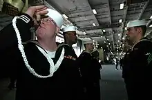 Il opère depuis le pont, muni de son sifflet de signal utilisé pour appeler les marins ou gabiers en service pour engager une manœuvre.