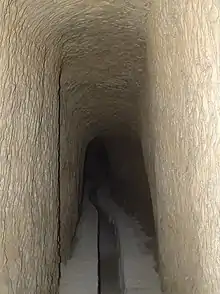 - excavation avec deux équipes partant de chacune des extrémités qui se rencontraient à mi-chemin[3].