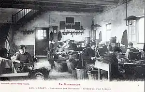 Cette opération mécanique de rognage des bouts et de ponçage du corps du bouchon (appelé roule) permet d'assurer les spécifications dimensionnelles (longueur et diamètre) du bouchon[10].