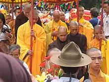 Le bouddhisme au Viêt Nam est principalement de la tradition du Mahayana (tăng hùng Phật ou Phật Giáo en Vietnamien)[1]. Il s'est installé au Viêt Nam dès le IIIe ou IIe siècle avant notre ère, provenant de l'Asie du Sud ou de la Chine dans le Ier ou IIe siècle de notre ère[2]. Le bouddhisme vietnamien a eu une relation syncrétique avec certains éléments du Taoïsme, de la religion traditionnelle chinoise et de la religion populaire vietnamienne (animiste)[3]. En 2014, il concernait 12,2 %[4] de la population dans l'ensemble de ses obédiences ou 13,6 % si l'on y intègre Hòa Hảo.