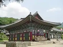 Lorsque le bouddhisme fut introduit en Corée en 372, c'est-à-dire 800 ans après la mort du Bouddha historique, le chamanisme était la seule religion. Comme il n'y avait pas de conflit apparent avec les rites de vénération de la nature, le bouddhisme put se fondre avec le chamanisme. En conséquence, les montagnes qui étaient réputées pour abriter les esprits devinrent les sites d'implantation des temples bouddhistes.
