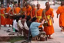 Les aumônes des laïcs consistent essentiellement en nourriture, mais elles peuvent aussi se présenter sous forme de vêtements, de médicaments et d’autres produits de première nécessité.