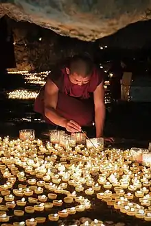 - le karmapa : en sanskrit « la manifestation de l'activité de tous les Bouddhas », est le titre du chef des karma-kagyu, l'une des écoles majeures du bouddhisme tibétain. Troisième chef spirituel du bouddhisme tibétain, le titre du 17e karmapa est sujet à une controverse. Il y a actuellement deux candidats karmapa, Trinley Thaye Dorje et Orgyen Trinley Dorje. Orgyen Trinley Dorje est considéré comme le successeur potentiel du dalaï-lama[17].